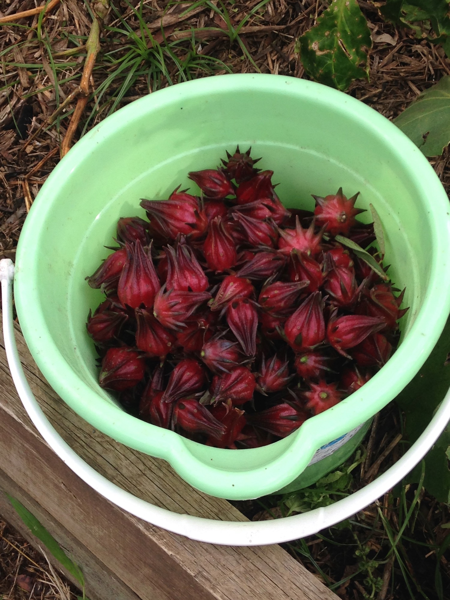 Bucket of Rosella calyxes